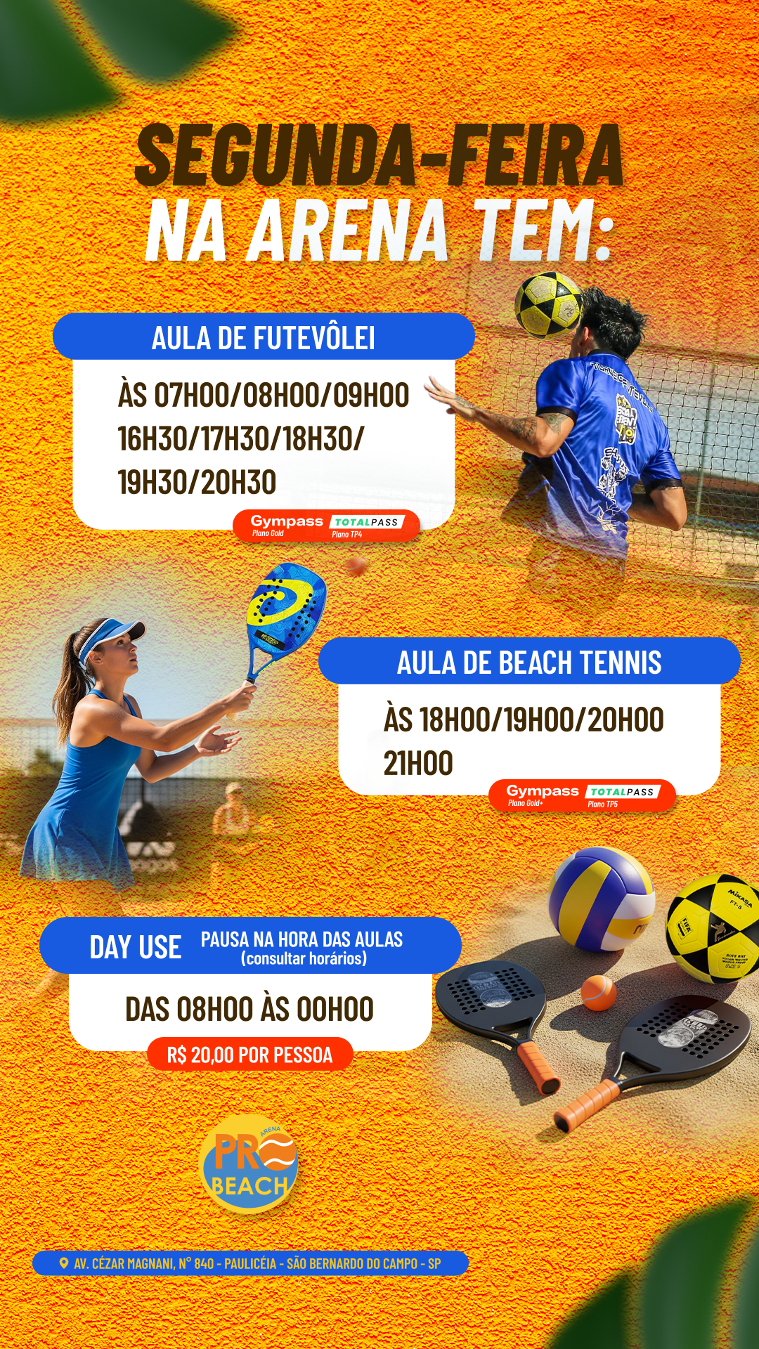 Aqui, oferecemos uma variedade de modalidades esportivas que atendem a todos os gostos e idades. Você pode praticar futevôlei, vôlei, e beach tennis, além de participar de aulas de funcional beach e futebol, que garantem um treino completo e dinâmico. Nossas quadras são projetadas para proporcionar a melhor experiência, com infraestrutura de qualidade e segurança.